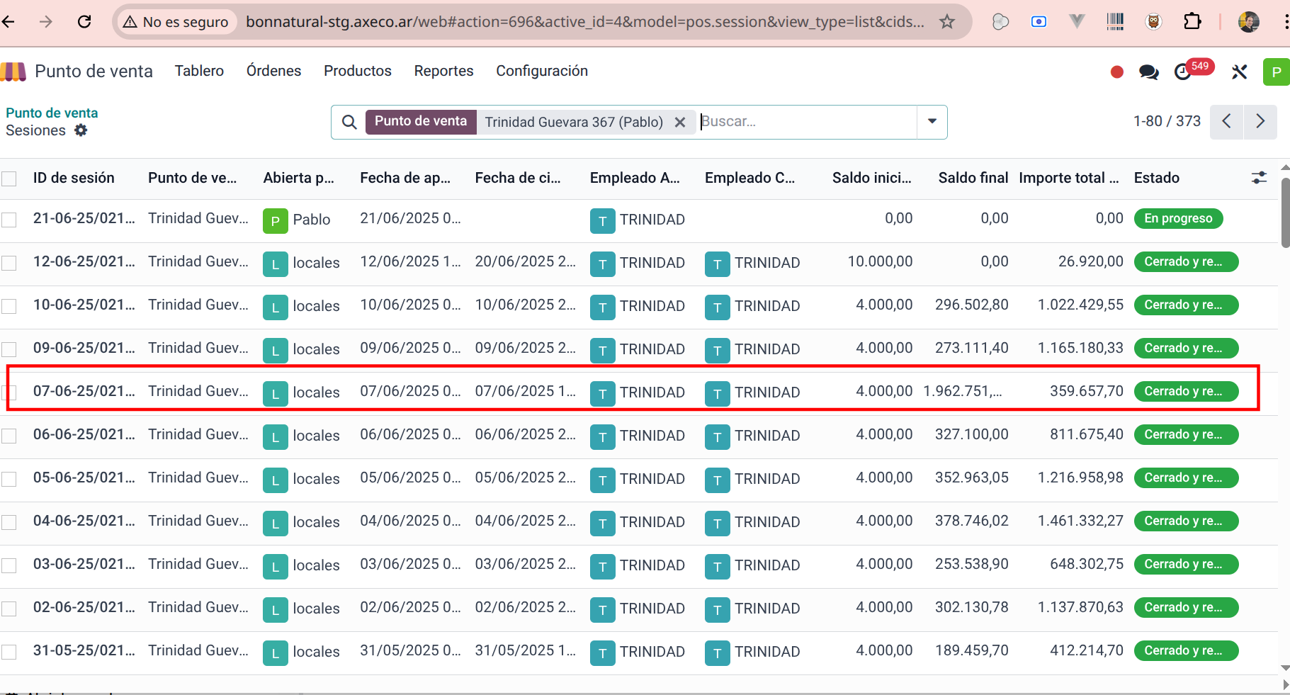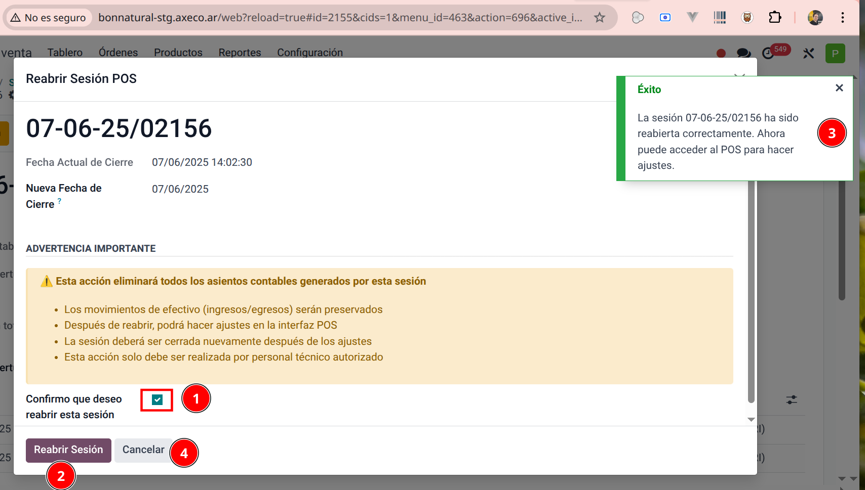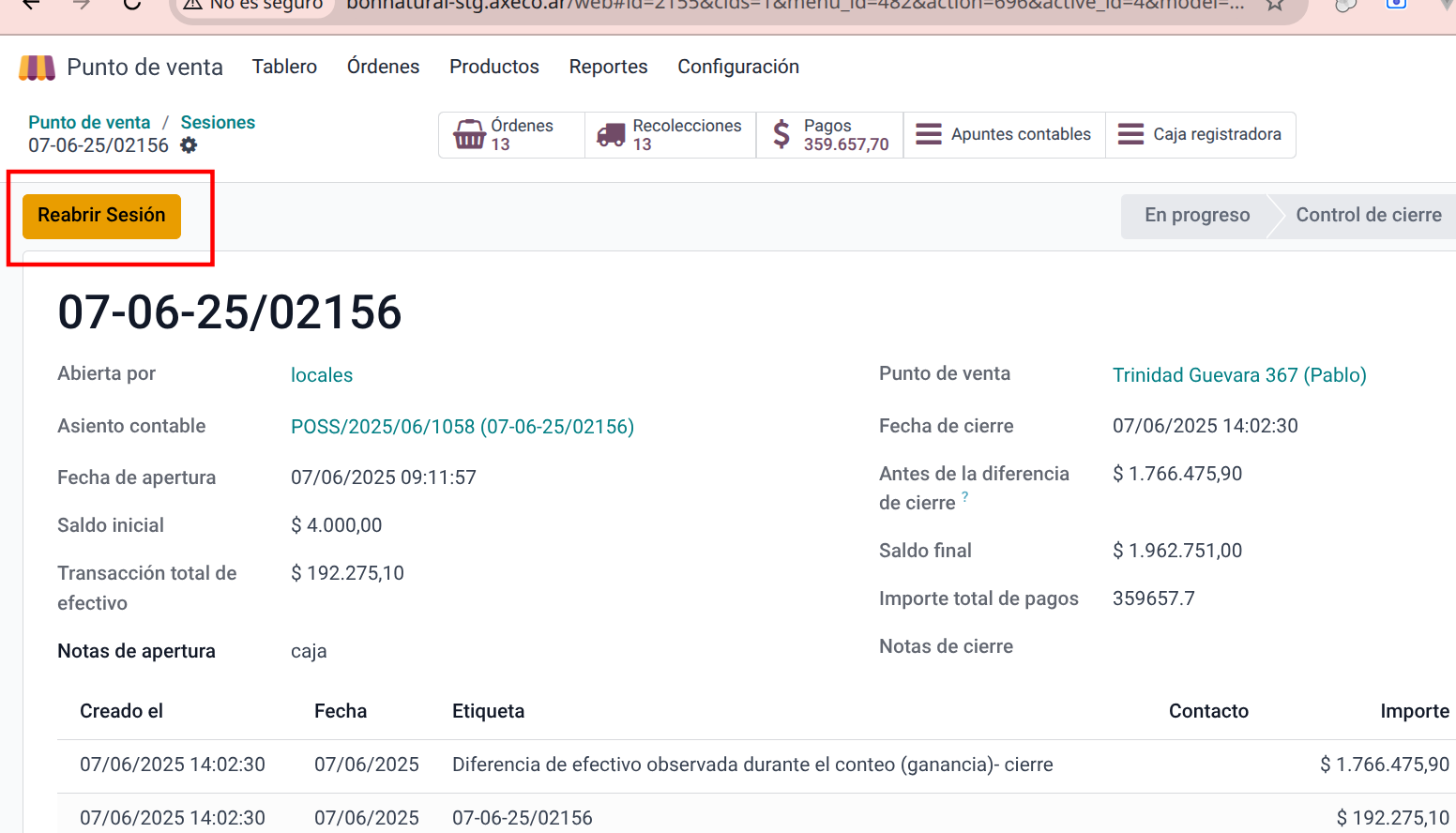 completar a mano la nueva fecha de cierre (usar la del mismo dia de apertura) en este caso 7-06,