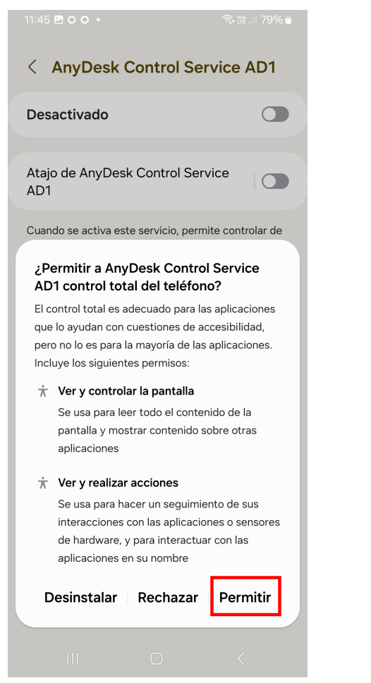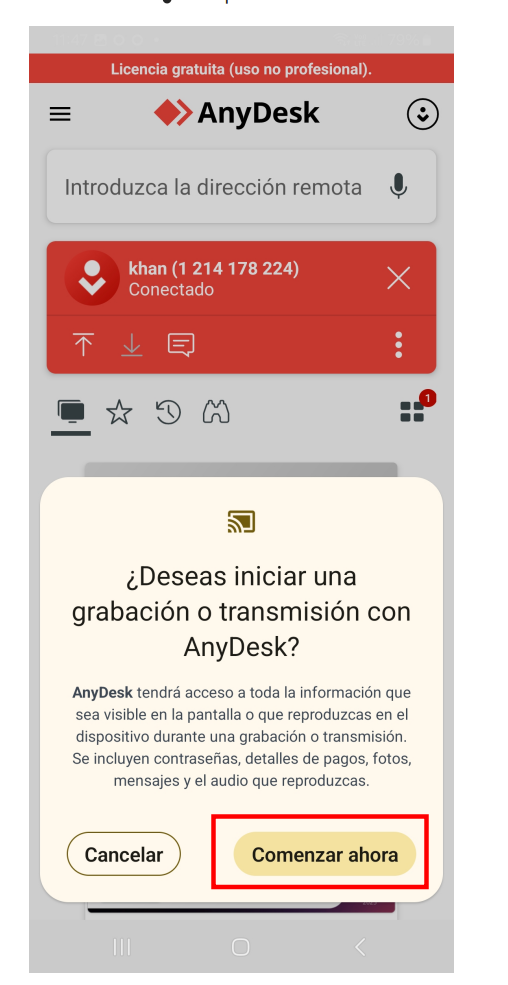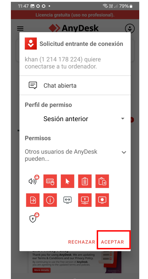 - cuando el técnico se conecte recibira un mensaje pidiendo permiso, aprete en aceptar